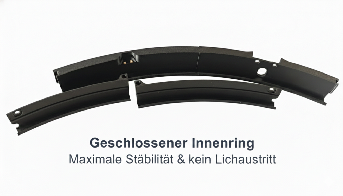 Bei anderen Systemen mussten Clips am Beleuchtungsring angebracht werden, da das Licht des LED-Streifens durchgedrungen ist.